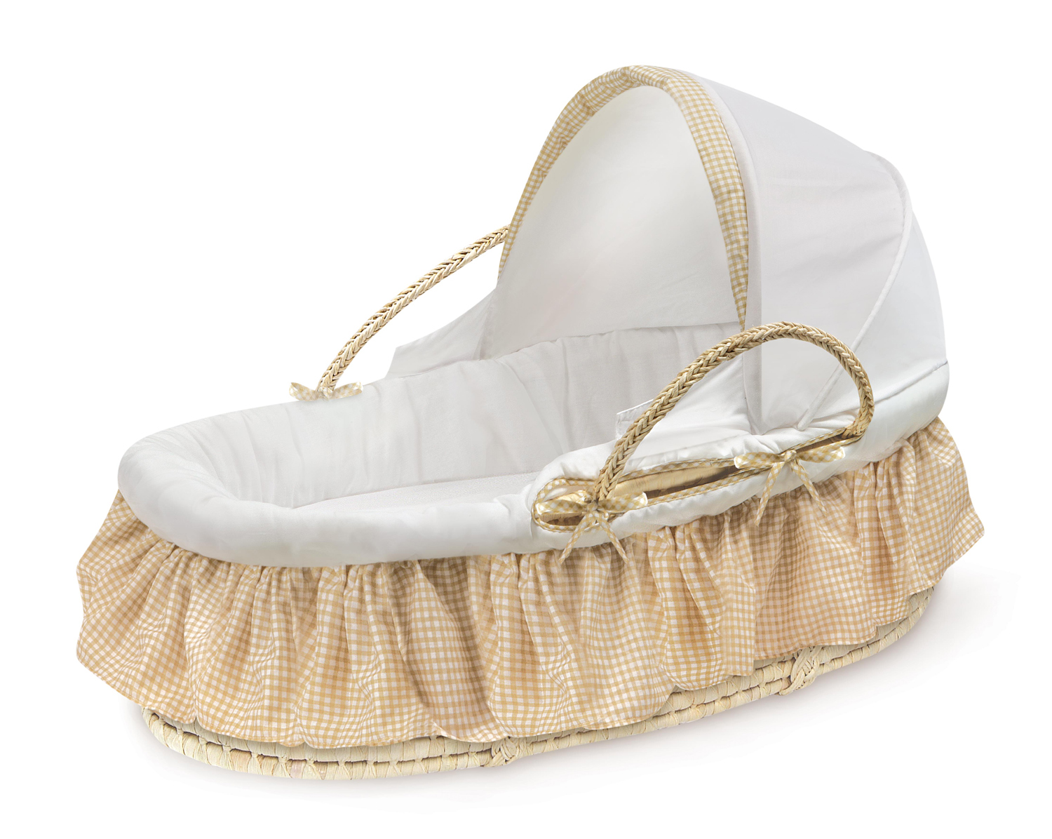Badger Basket Natural Moses Basket with Fabric Canopy - Beige Gingham Bedding For You, Watch the lists below: